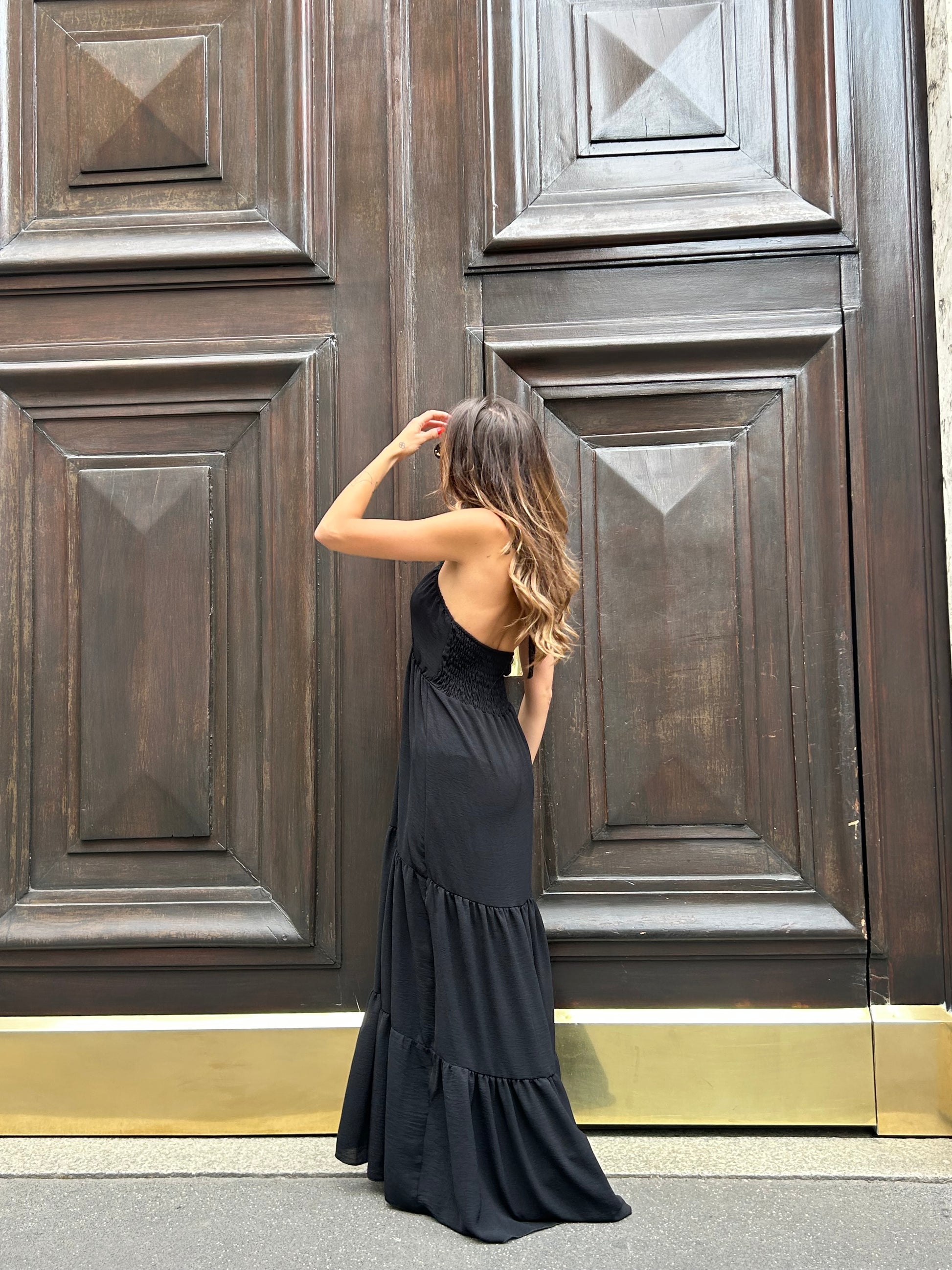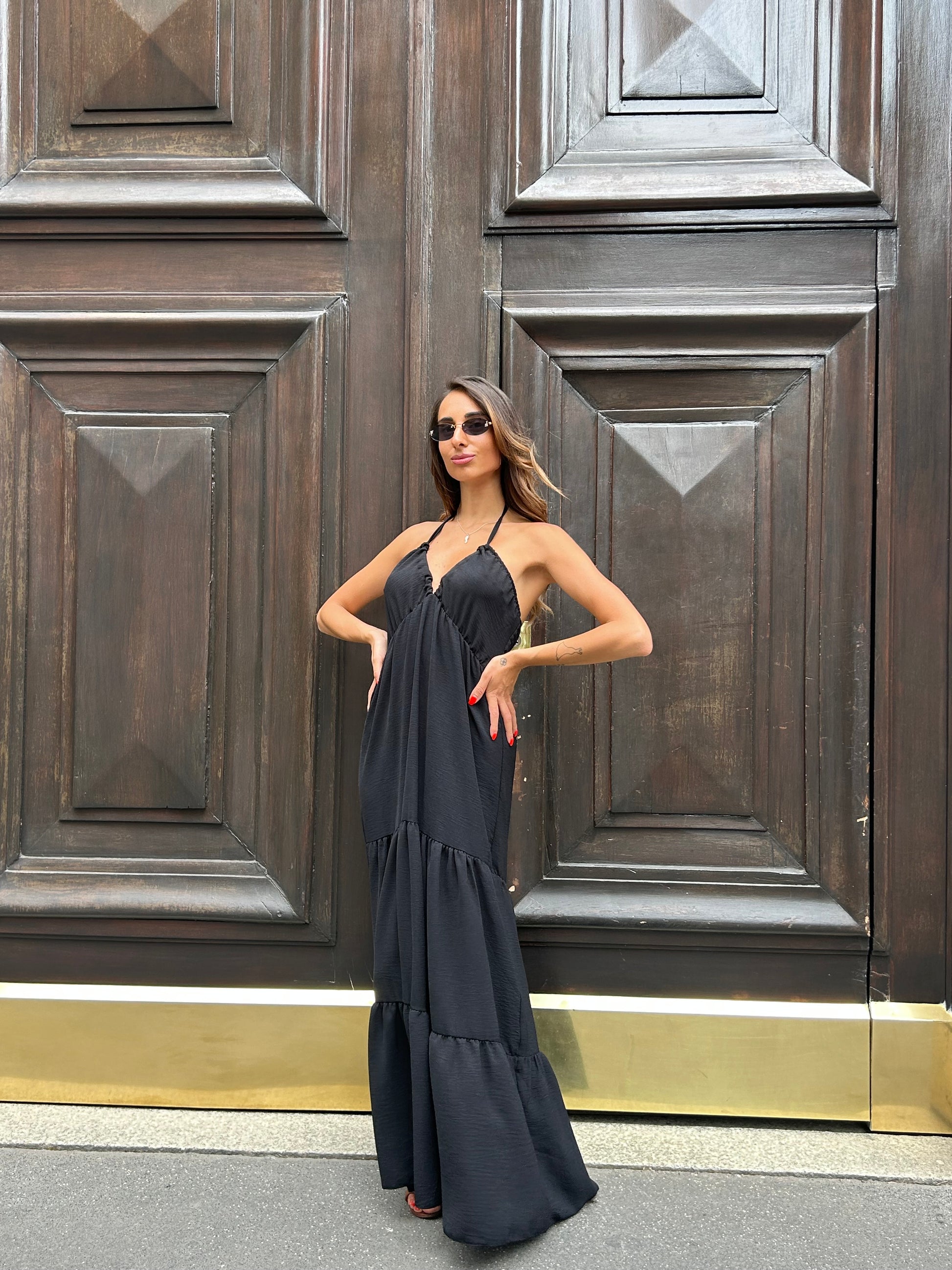 Lasciati sedurre dalla freschezza e dal comfort dell'abito lungo Zoe. La particolarità di questo abito è la sua schiena scoperta, che aggiunge un tocco di sensualità e femminilità. La taglia unica lo rende adatto a donne dalla 38 alla 44, garantendo una vestibilità perfetta.