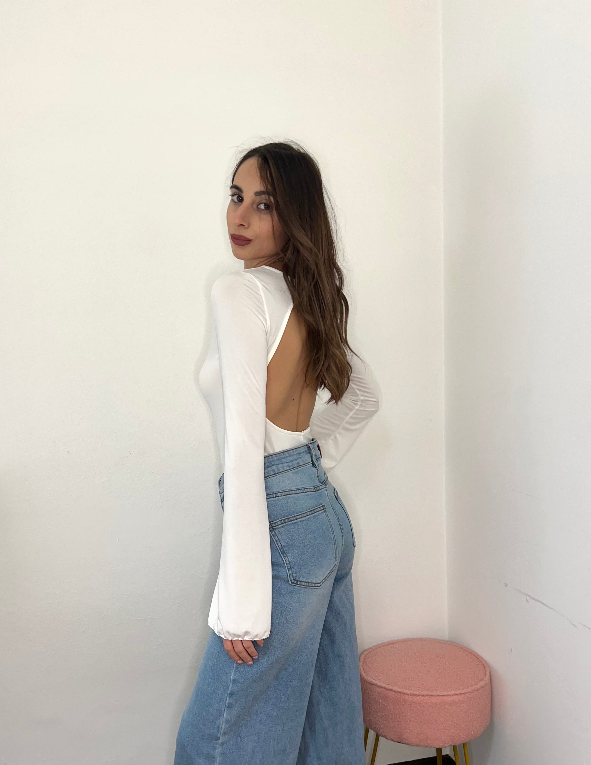 Il nostro Body Serena è elegante e raffinato, perfetto per chi ama la classe. La manica a campana e la scollatura sul retro aggiungono un tocco di originalità e sensualità, rendendolo un capo unico nel suo genere. Indossalo per un look esclusivo e sofisticato.
