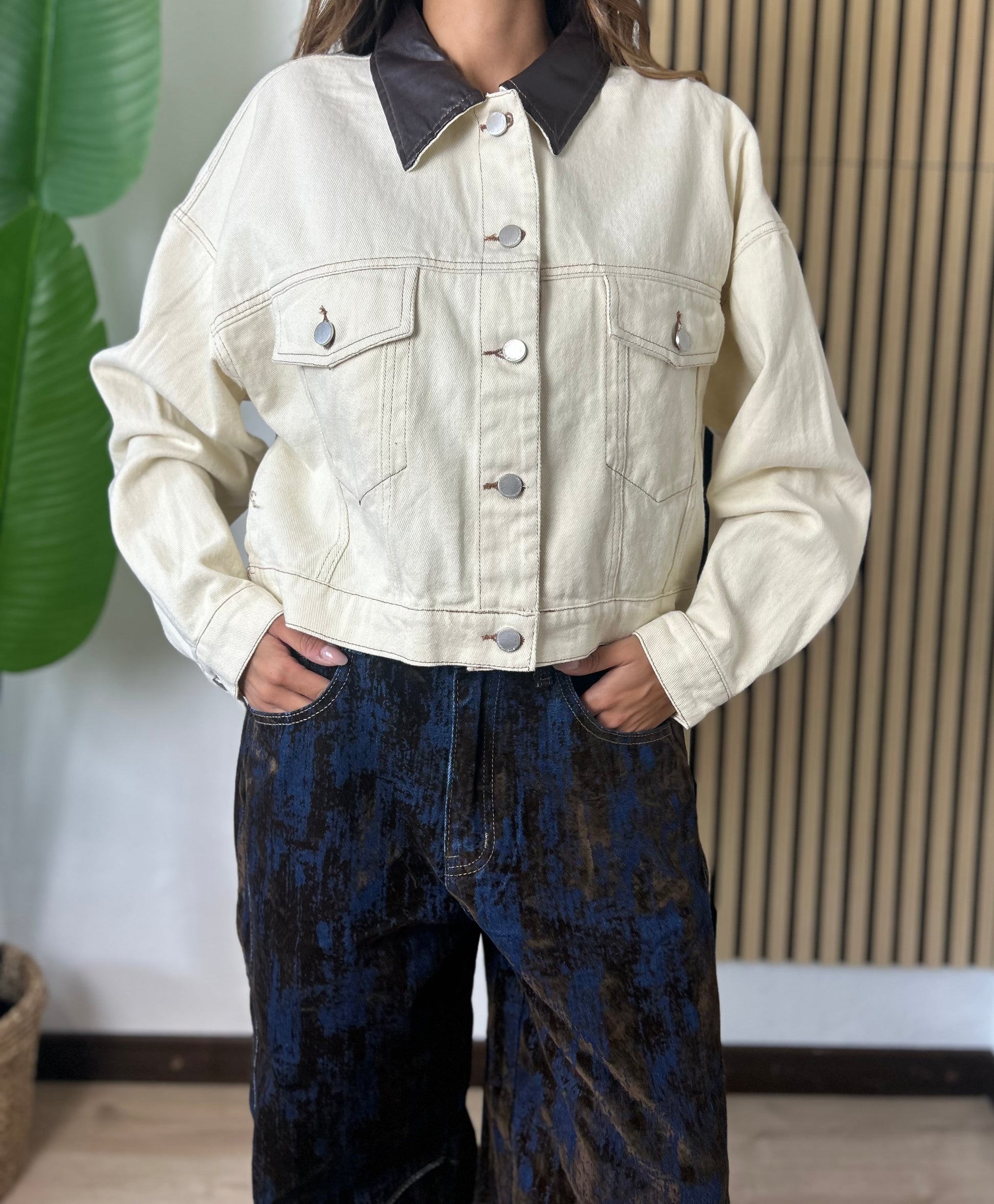 Aggiungi stile e comfort al tuo look con la Giacca Gaia in denim con colletto in ecopelle. Questa giacca versatile è disponibile in taglia unica che veste da una XS a una L, offrendo una vestibilità perfetta per ogni occasione. Coniuga moda e praticità con la tua nuova giacca preferita.