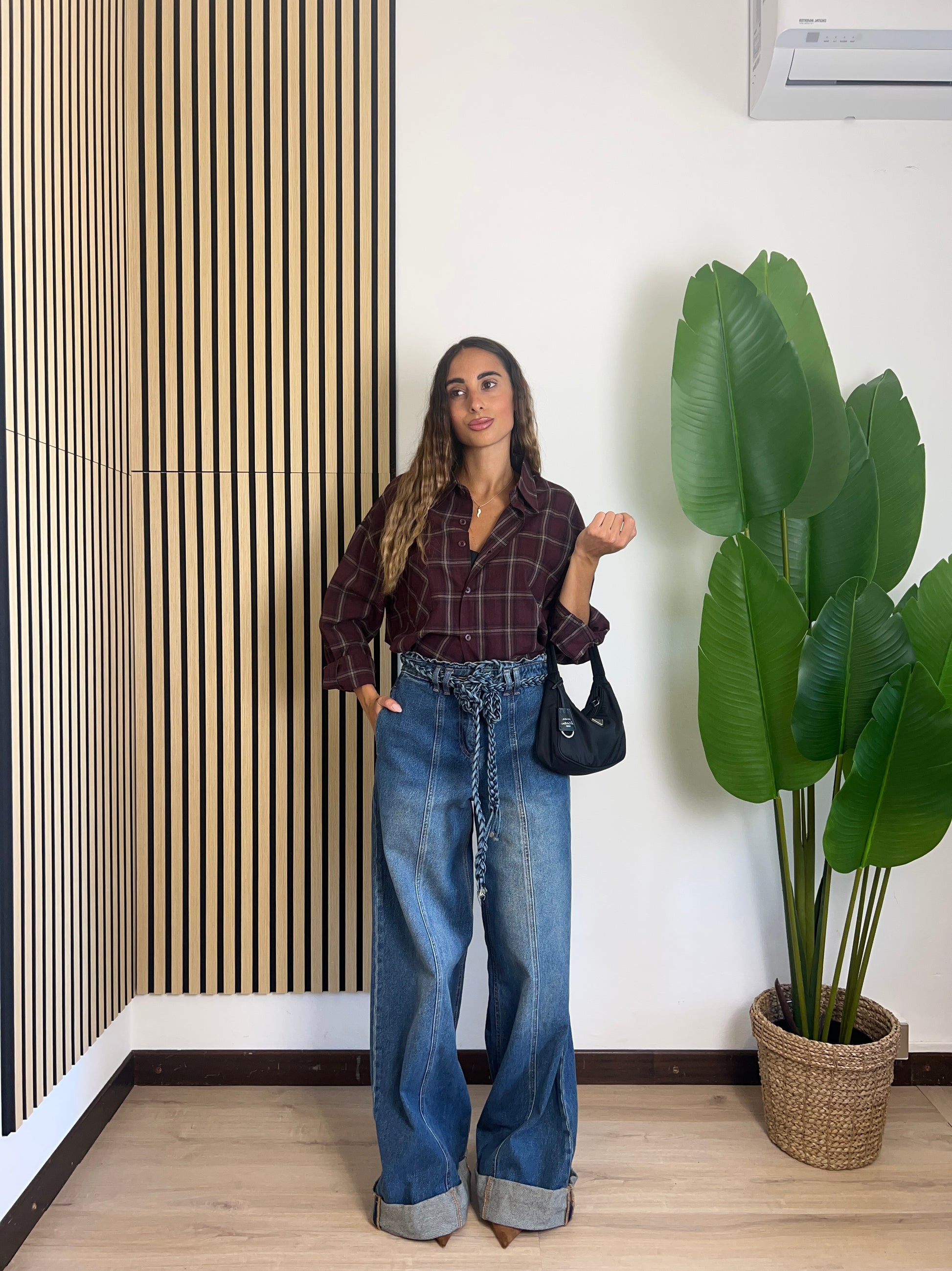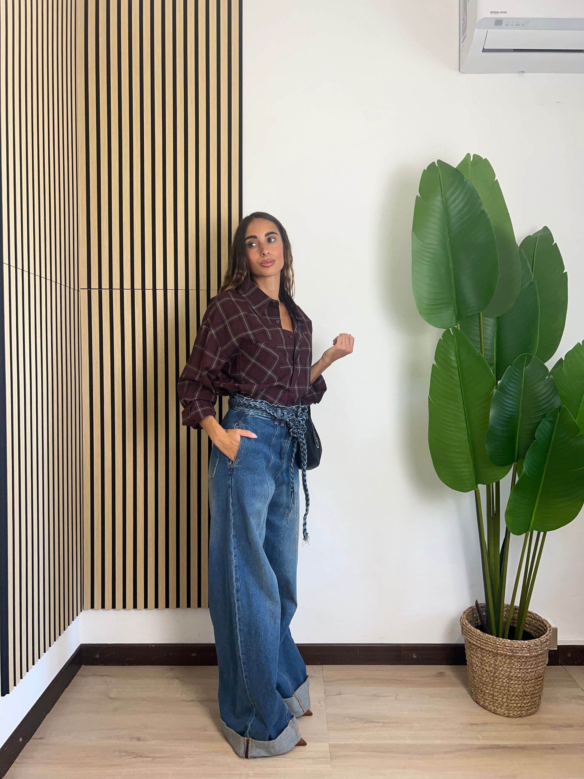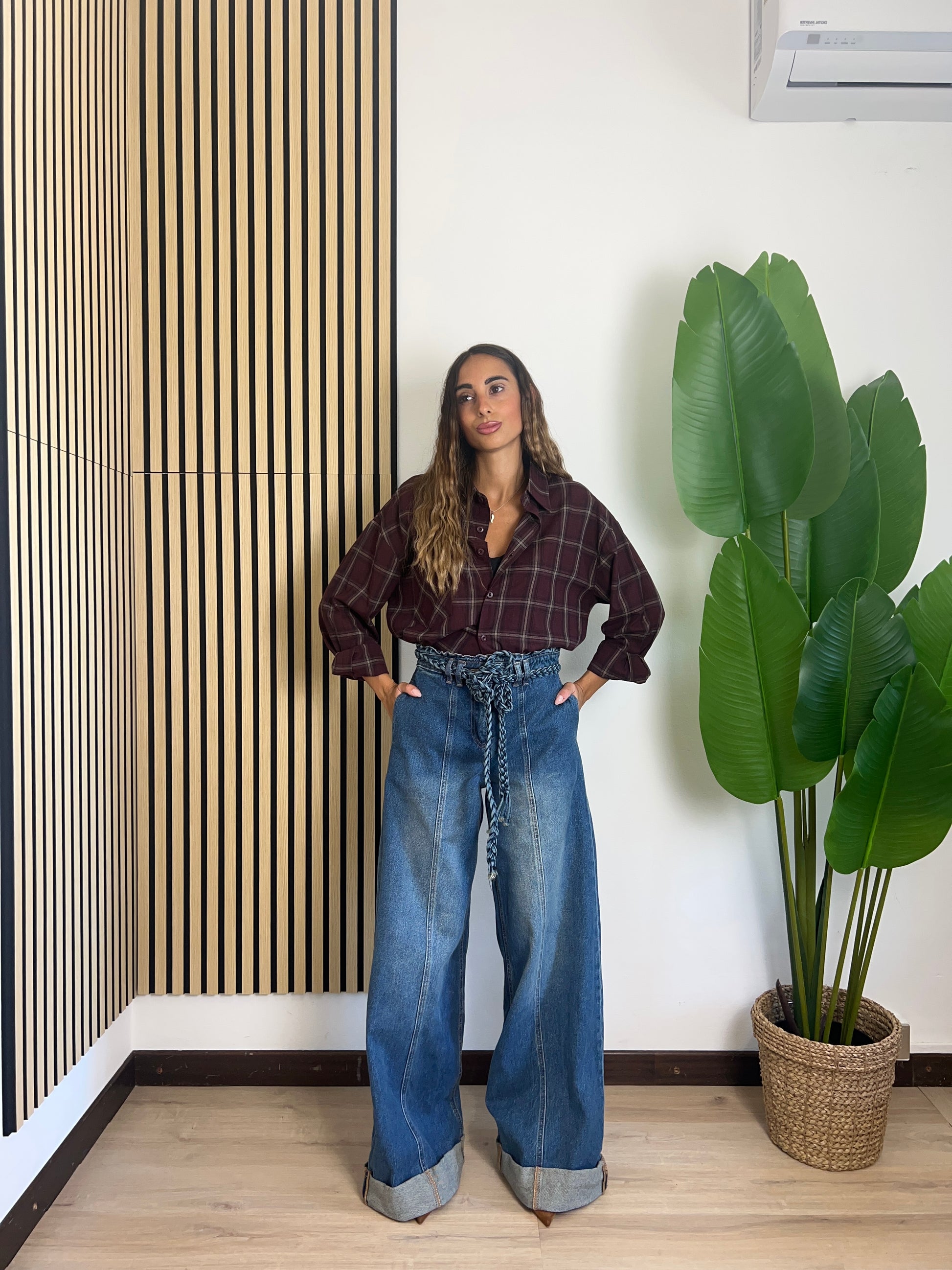 Jeans mery, con vita alta e cintura a cordina regolabile. Massima comodità e stile personalizzabile per un look unico e alla moda.