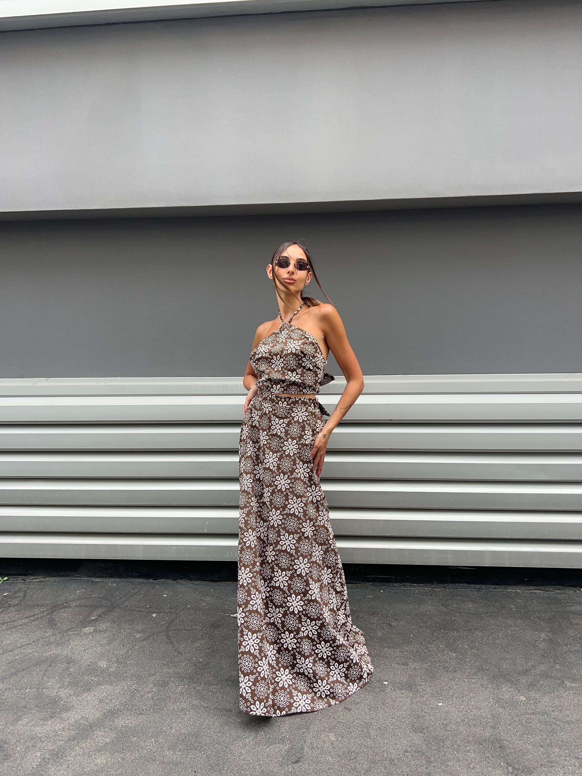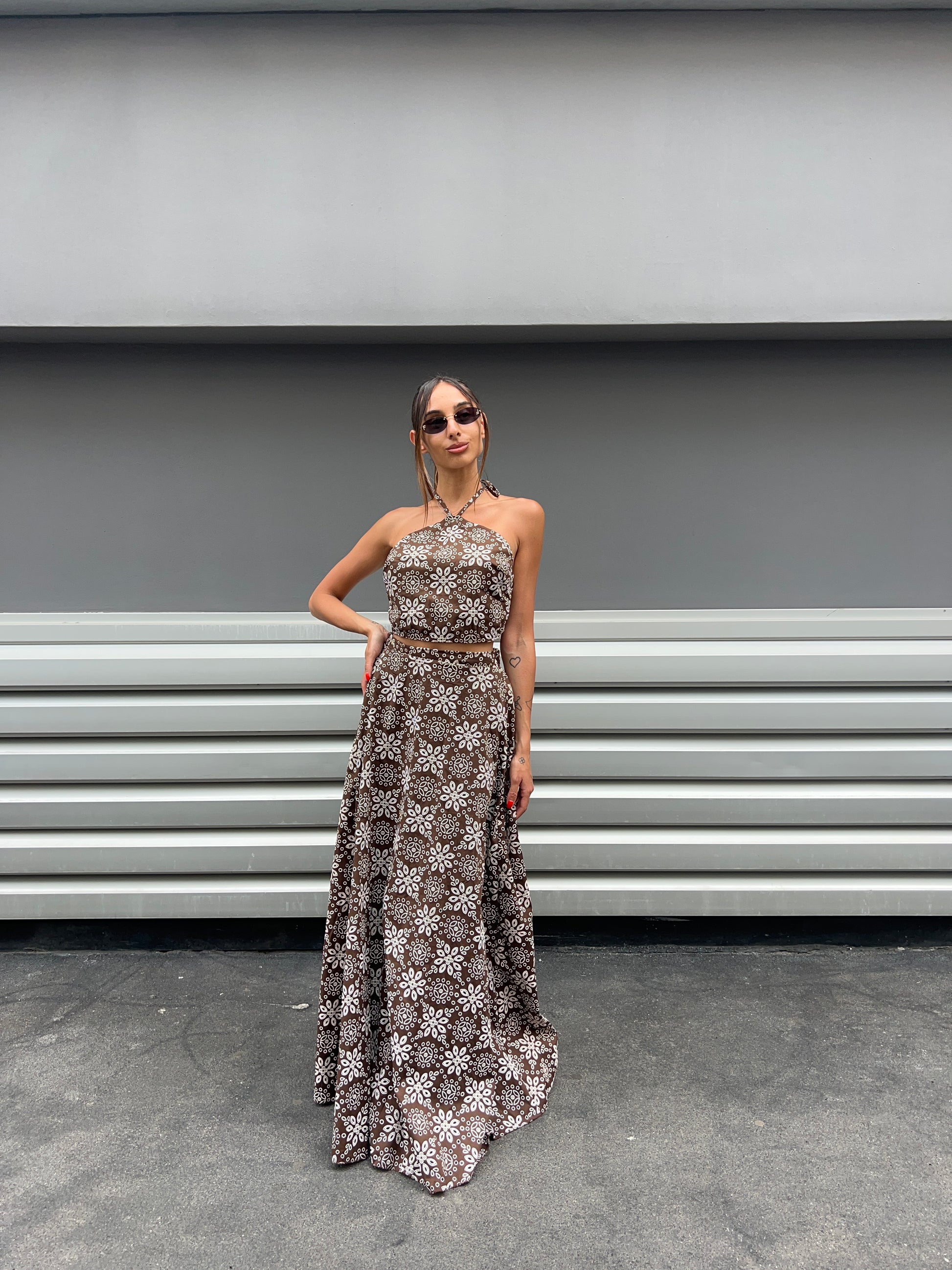 Aggiungi un tocco di stile al tuo guardaroba con il set sangallo. Questo must-have dell'estate è composto da una gonna lunga con elastico in vita e un top con un elegante allaccio dietro. La taglia unica si adatta perfettamente dalla XS alla L, rendendolo perfetto per tutte le forme e...